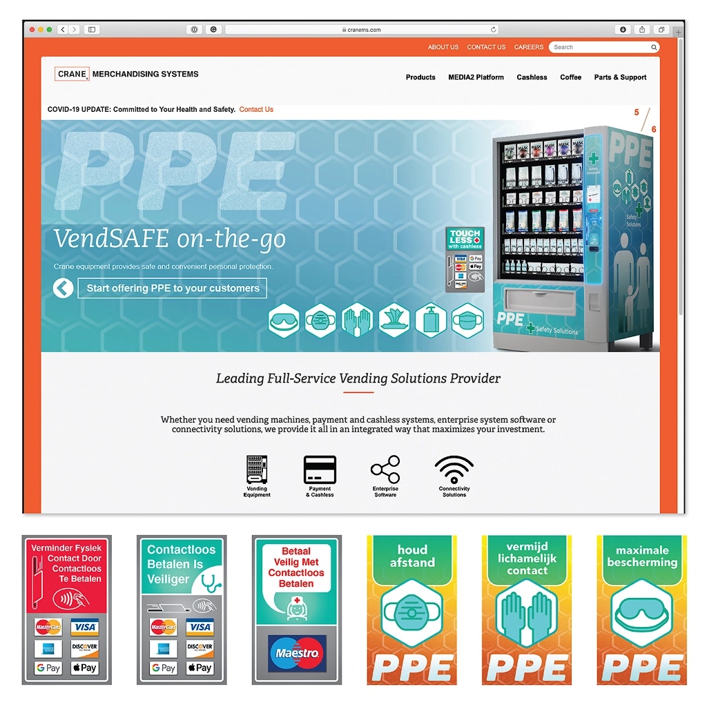 Crane Merchandising needed a complete brand package for a PPE (personal protection equipment) vending machine. Development needed to be prompt, given the broad and intense presence of Covid-19 and the likelihood that competing manufacturers were developing similar machines.