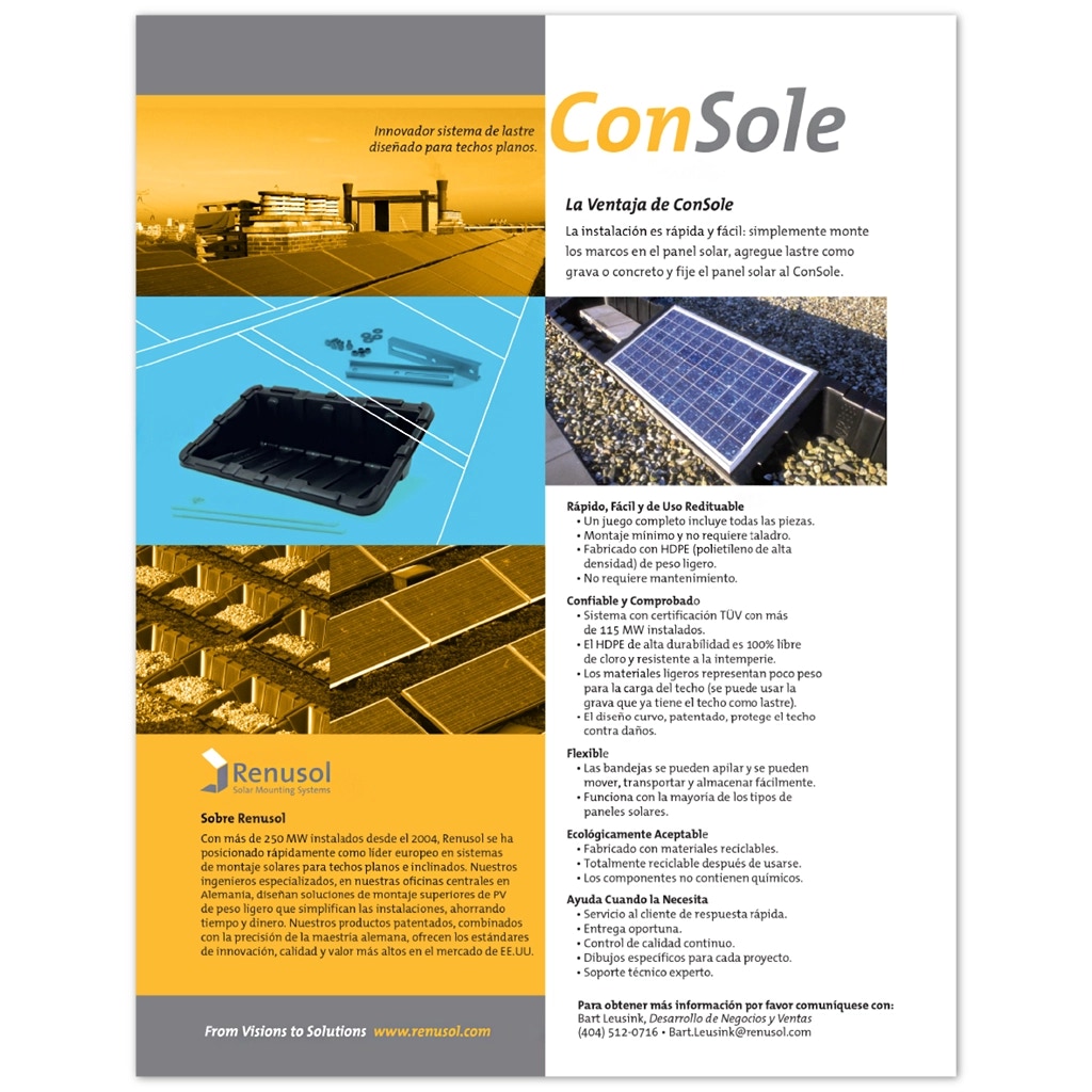 Produce a campaign with immediate brand identification and messaging that connects to the target market with quick and witty creative ad copy- separating Renusol from competitors. Use the brand yellow to grab attention and stake a claim on the market’s most simple solar mounting system. Design, illustration, photo editing, copy writing.